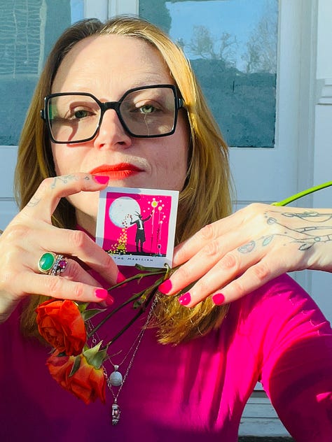 This, what you’re reading, will keep coming (every once in awhile) and will remain free … but if you choose to subscribe (and if you pre-order a deck!), you’ll receive more… more off-the-cuff writing, poetic prose, story snippets, art from the archive, experimental wordplay etc and insights into the book and my story as I write it, all of it coming to you more regularly than this currently is.