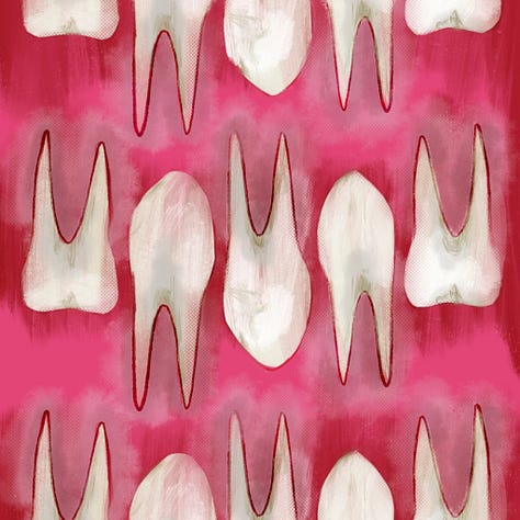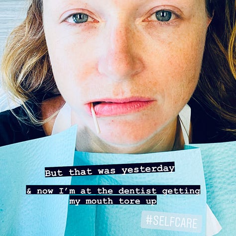 I feel like things are coming together, though my tooth might disagree. A short story: when I was about 7 or maybe as old as 9 I threw the tantrum of a lifetime in the dentist’s chair because I absolutely refused to do the fluoride swish and my refusal meant absolutely nothing to anyone there. In looking back I have an urge to spin it as a righteous riot for body autonomy — and it surely was — but mostly that stuff tasted GROSS and I wanted nothing to do with it. I continued going to the same dentist for the next 15+ years and every time the same nurse and the same receptionist would greet me with a chuckled reminder of my fit (further evidence of unchecked anger’s futility? maybe!). Surely thanks to the fluoride I had great teeth and nary a cavity until age 23 when, while under local anesthesia and with a mouth wide open for all manner of metal implements to enter it I was asked out by the (same) dentist’s son, now assisting. He called me several days later, having taken my number from my dental records (right ahead of a note indicating fluoride sensitivity?). Though we did drink beers on East Cliff and talk surfing I never did go back to that dentist… and my teeth have suffered since, collateral damage of a latent dentophobia.