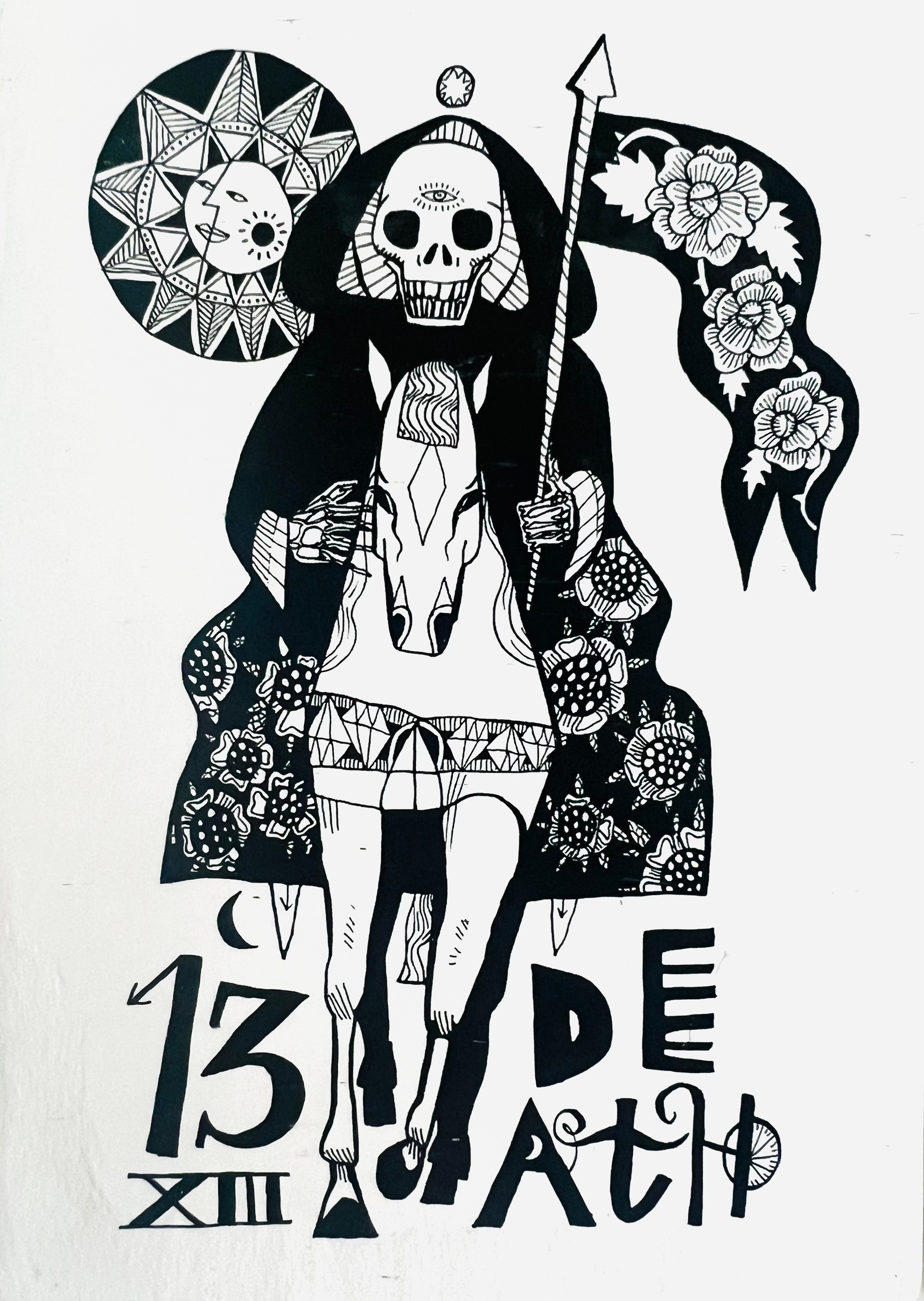 Contrary to popular opinion, Death is not the scariest card in the deck — I’d rather pull it than the Tower any day. Another, less weighted word for it might be Transition, as it straddles the space of death and rebirth, growth and decay. The grinning skeleton reminds me that it is we who make such arbitrary distinctions — for what is decay but another kind of bloom? Endings of any kind make way for the beginning of another thing. Upright, the Death card states this like a fact: here is an end, and here is beginning. In a way, it’s the truest thing we know. Reversed, I think it becomes a question, and more real, if not more True: where are you (your soft animal body— & that’s the last time I’ll quote Mary Oliver here) in relation to this most natural cycle? Are you resisting it, forcing it, putting the cart before the horse? Do you desire growth without grief, birth without pain? Are you plowing your resources into life support at the expense of that which waits to be born? Are you fixated on what has gone before, is your room full of ghosts, are you shut to what waits for some space to be made to come in? Or are you pushing for the door, endlessly ending it premature, in love with the first blush but never the maturation? I’ve been guilty of all these modes, and know too well that traumatic loss heavily complicates one’s relationship with the cyclical nature of Death — but I know too that part of my “healing” (I resist that word, if not the process) involves becoming more comfortable with the “both/and” space of renewal, reinvention and rebirth (as well as the obvious, continuing to face my highly logical fears of untimely endings).