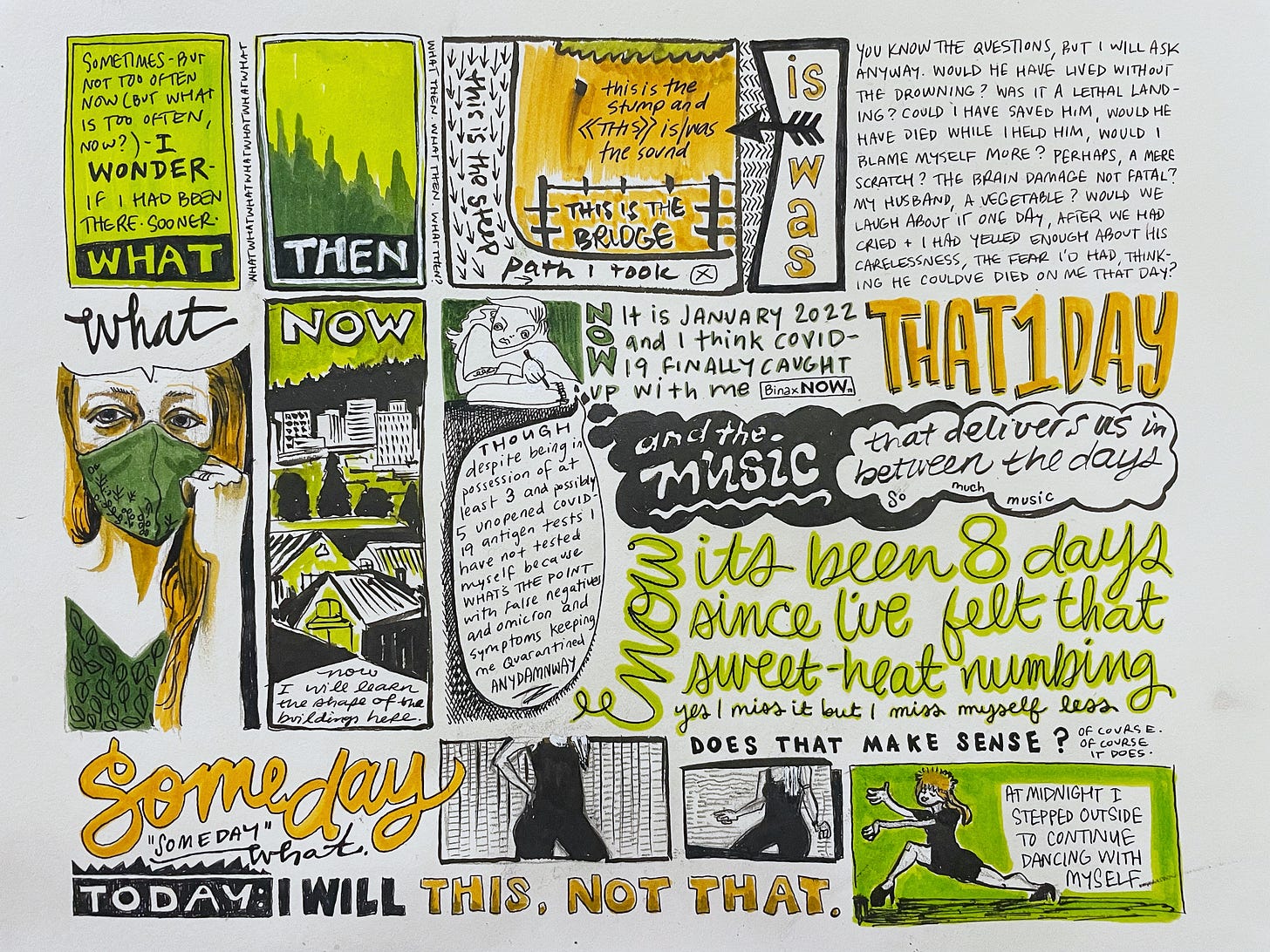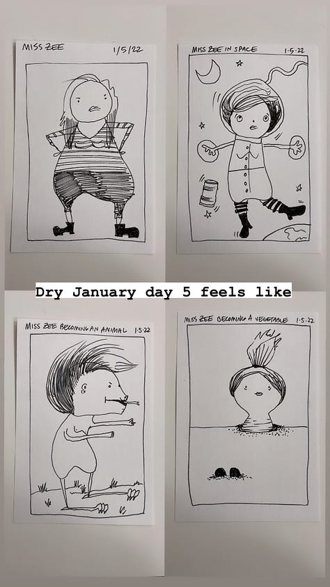 As soon as I stopped drinking I started drawing sketchbook comics again: I had so much more time on my hands, and needed something to do with them. Initially I was so accustomed to using the iPad for everything that sometimes I tried to pinch-zoom the paper. But I liked the immediacy of pen and ink, the mark of the mistake, the way it forced formatting on the fly.